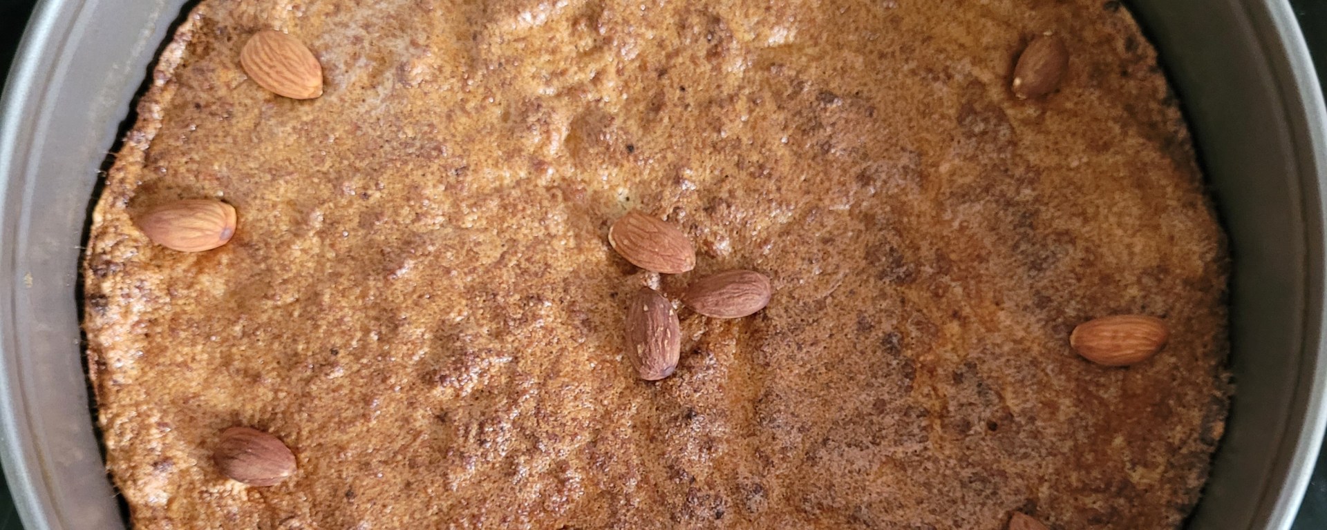 - 45 Minuten auf der mittleren Schiene backen. Nach der Hälfte der Backzeit Mandelsplitter oder ganze Mandeln auf dem Kuchen verteilen.