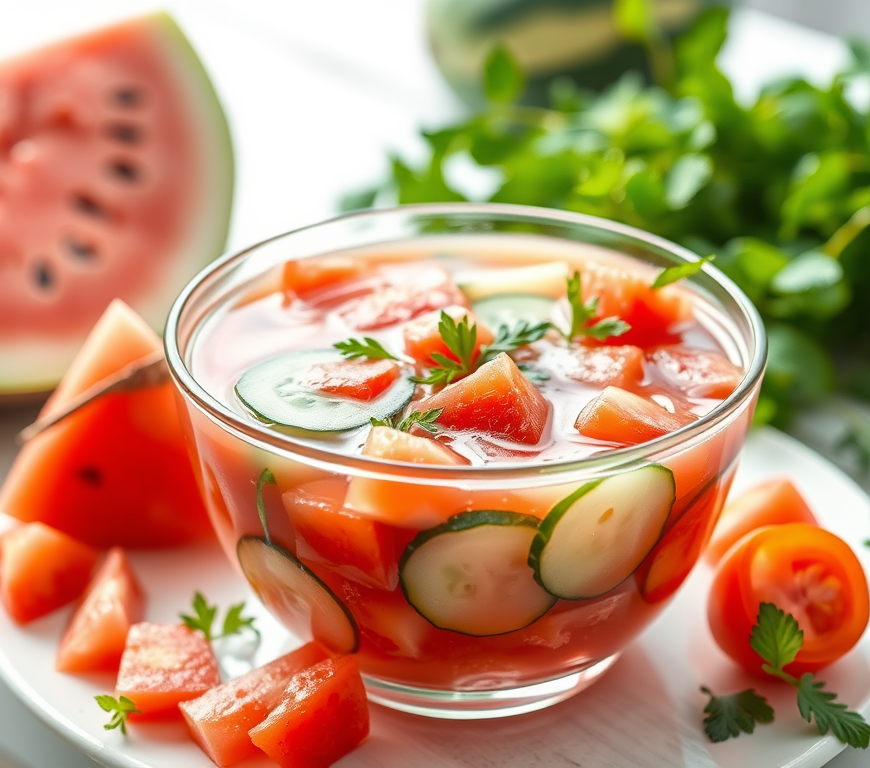 Heute gibt es Sommer auf den Teller und dafür musst du nicht mal kochen. Die Vorbereitung für die Gurken-Tomaten-Suppe ist schnell erledigt und dann geht es für mindestens 12 Stunden ab in den Kühlschrank. Die Zutaten Für 6 Portionen brauchst du: 4 Tomaten 1,5kg Wassermelone 1 Stück Salatgurke (ca. 10 cm) 2 Frühlingszwiebeln 1 EL Minze (frisch gehackt) Salz und Pfeffer Die Zubereitung Die Vorteile … Perfekt für heiße Tage: kalte Gurken-Tomaten-Suppe (Rezept des Monats August) weiterlesen